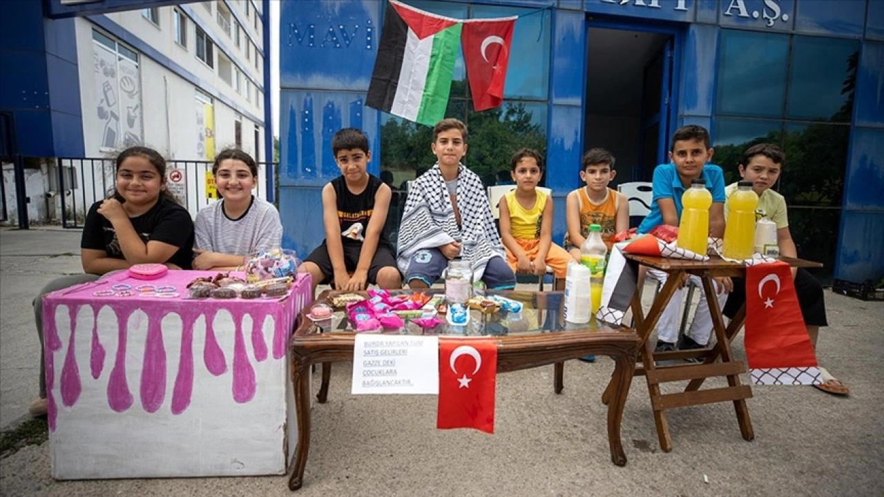 haberlerde İsrail'in katliamlarını izleyen çocukların bu durumdan etkilenerek kurdukları stantta ürün satışıyla elde ettikleri geliri Gazze'ye bağışlamaya karar verdiğini söyledi.
