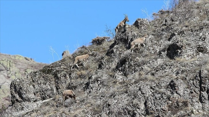 Dağ keçilerinin yiyecek aradığı anlar kameraya da yansıdı.