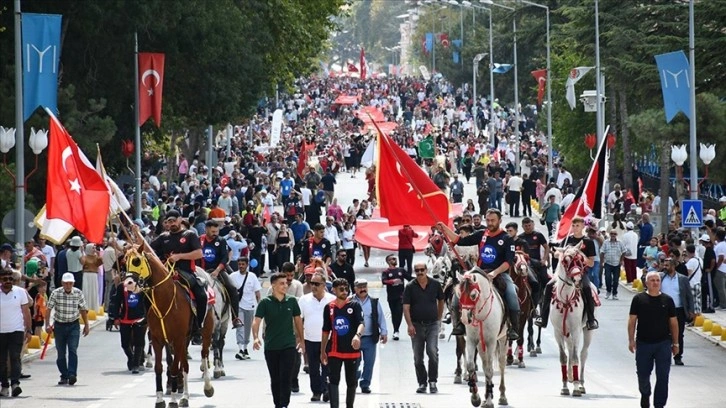Yörük gruplarının halk oyunları gösterilerinin ardından protokol üyeleri ile beraberindekilerin katılımıyla Ertuğrul Gazi Türbesi'ne kadar kortej yürüyüşü gerçekleştirildi, daha sonra türbede dua edildi.