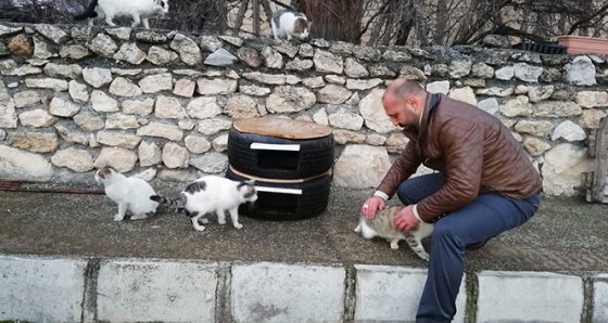 Soğuk havaların gelmesiyle birlikte çocuklarının mahallede beslediği kedilerin üşüdüğünü gören Adem Bülbül isimli vatandaş, eski araba lastiklerini toplayarak kedilere barınak yaptı. Mahallenin çeşitli noktalarına koyduğu barınaklara kedi evi adını veren çocuklar ise kedilerin artık ıslanmayarak üşümeyecekleri için mutlu oldular.