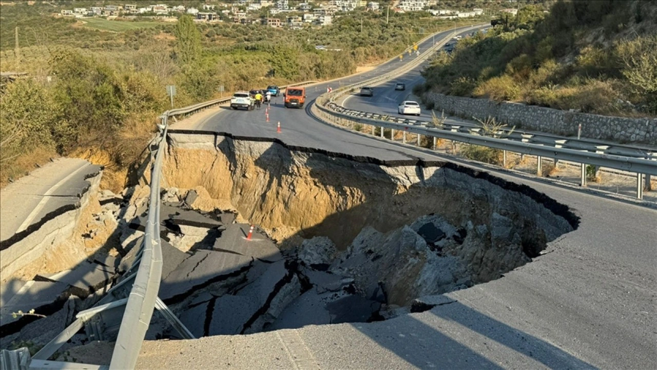 Kuşadası-Söke kara yolu Yaylaköy mevkisi Kuşadası istikametinde yolda çökme meydana geldi.