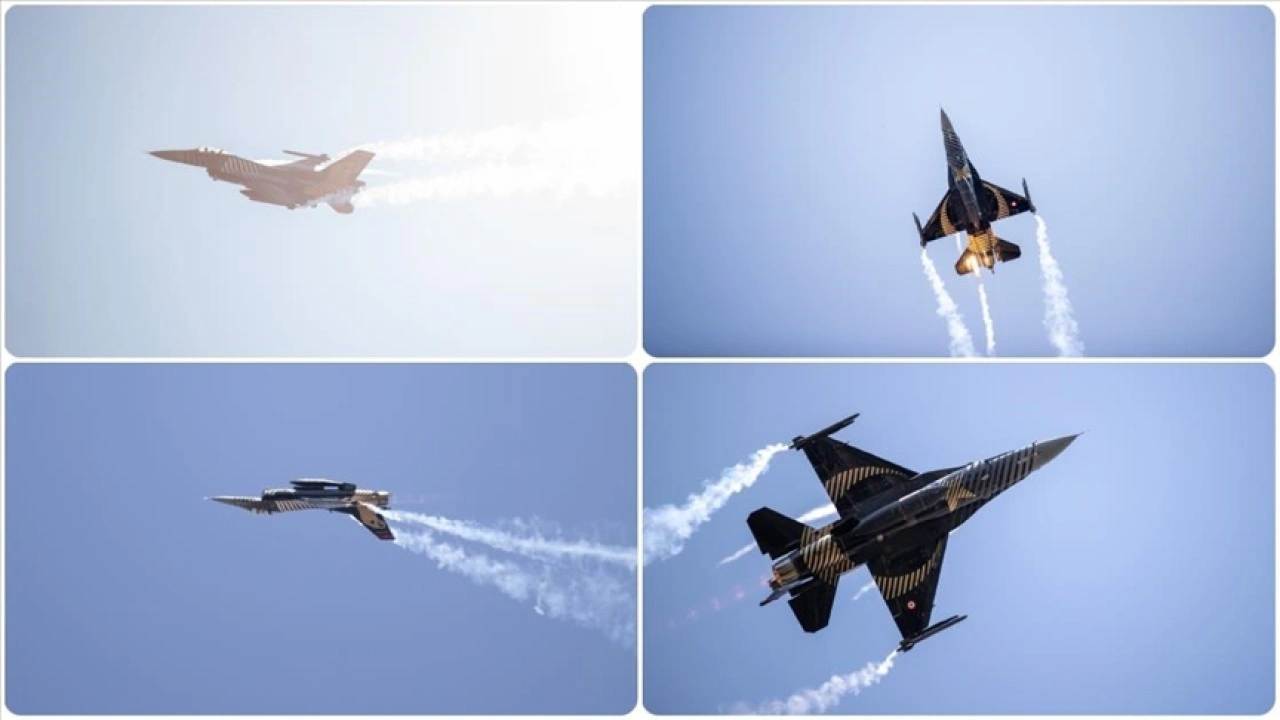 Isı güdümlü füzeleri şaşırtmak için kullanılan alev toplarının da (flare) atıldığı gösteri, izleyenlerin beğenisini topladı.