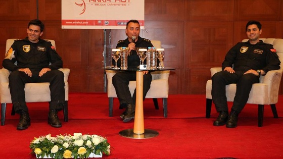 Türk Hava Kurumu Üniversitesi ANKA Havacılık ve Uzay Topluluğunca bir otelde düzenlenen etkinlikte, SOLOTÜRK pilotlarından Yüzbaşı Erhan Güner ve Üsteğmen Serdar Doğan ile Basın ve Halkla İlişkiler Sorumlusu Üsteğmen Emrah Bayrı, etkinliğe katılan öğrenci ve vatandaşlarla söyleşi yaptı.