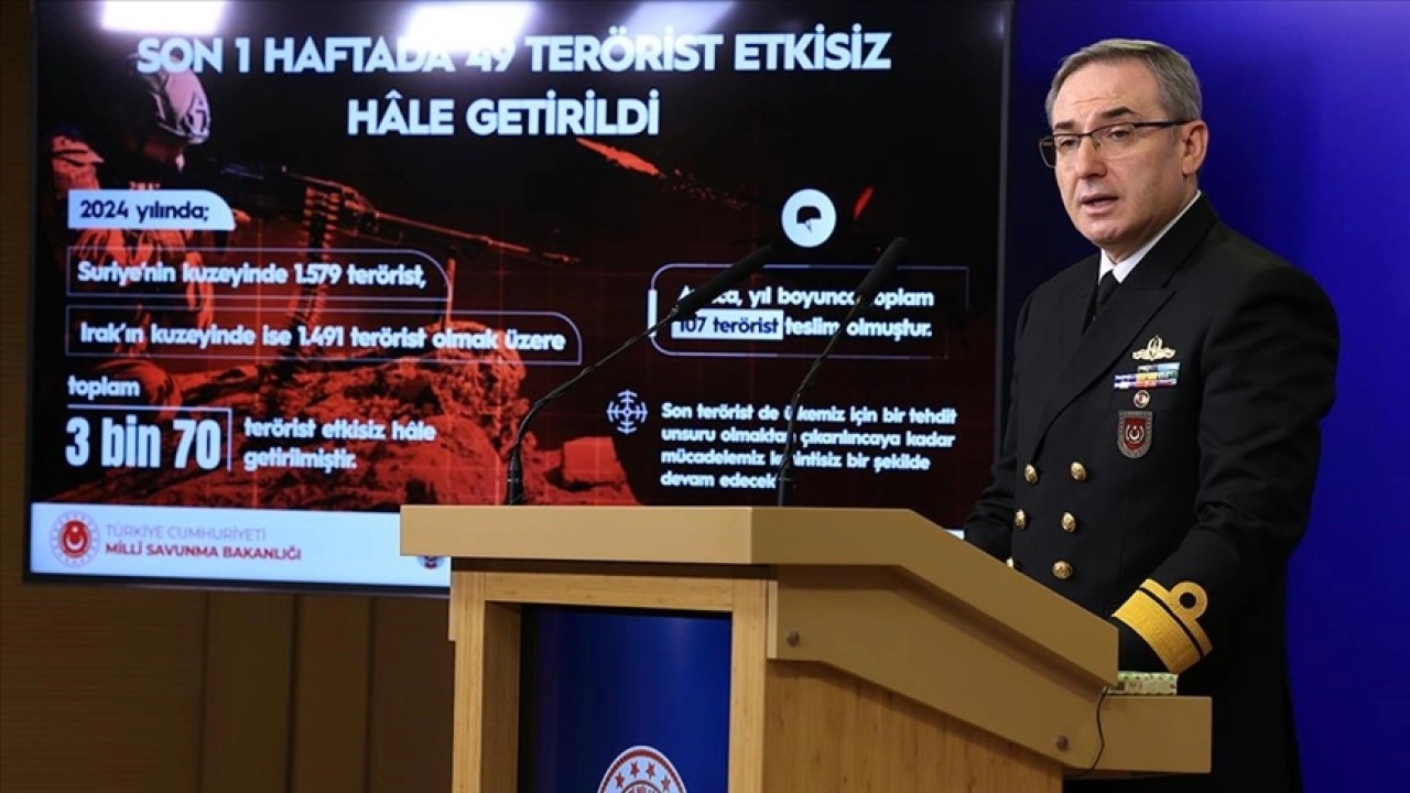 "Sahanın gerekliliğine uygun, alışılmadık, öngörülemez, süratli ve sürekli icra esaslarında gerçekleştirilen kararlı operasyonlarla 2024 yılında, Suriye'nin kuzeyinde 1579 terörist, Irak'ın kuzeyinde ise 1491 terörist olmak üzere toplam 3 bin 70 terörist etkisiz hale getirilmiştir. Ayrıca, yıl boyunca toplam 107 terörist teslim olmuştur.
