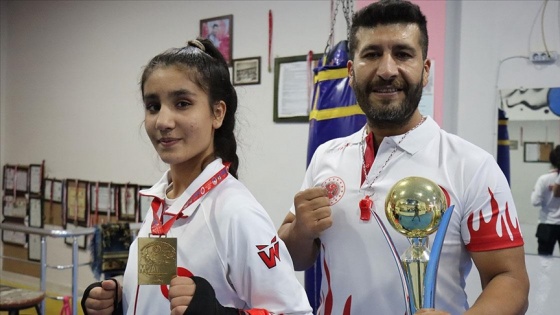 Muay Thai Milli Takımı'nın antrenörü baba Erdal Erdoğan, kendisine ait salonda kızını Dünya Şampiyonası'na hazırlıyor.