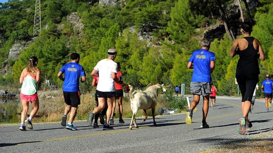 Ortaca Belediyesi ile Interval Events işbirliğinde 28 Ekim'de Dalyan Mahallesi'nde yapılan 22 ülkeden 40'ı yabancı bin 250 sporcunun katıldığı organizasyonda, tarlada otlayan bir keçinin yarışmacılarla koştuğu görüntüler ortaya çıktı.