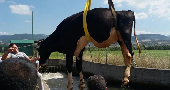 Muratlar Mahallesi'nde meydana gelen olayda çevrede otlamak üzere gezen inek DSİ'ye ait sulama kanalına girdi.