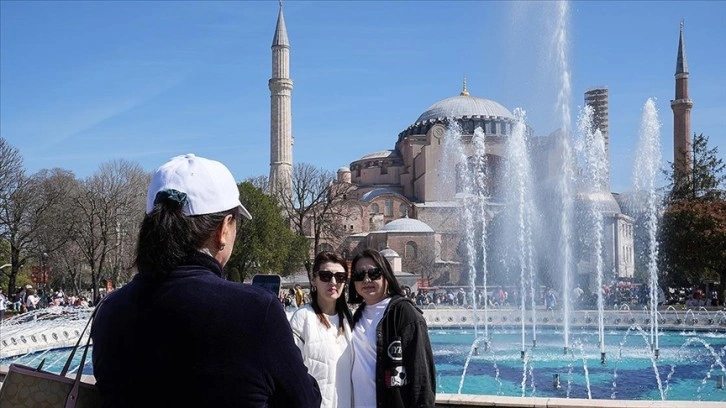 Güzel havanın da etkisiyle binlerce turist, Sultanahmet Meydanı'nı doldurdu.
