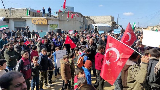 Fırat Kalkanı Harekatı bölgesindeki Ahtarin'de yaşayanlar düzenledikleri destek gösterisinde rejimi protesto etti. Türkiye'ye destek sloganları atan halk, şehitler için de dua etti.