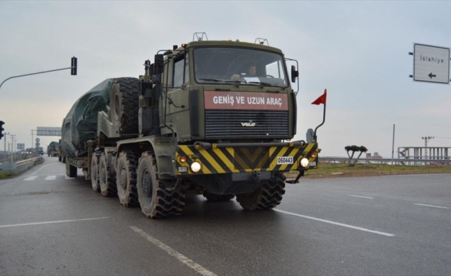 GAZİANTEP (AA) - Hatay'da konuşlu birliklere takviye amacıyla gönderildiği öğrenilen tankları taşıyan tırlar, İslahiye ilçesine geldi.Güvenlik ekiplerinin eşlik ettiği konvoy, daha sonra Hatay'a doğru hareket etti.