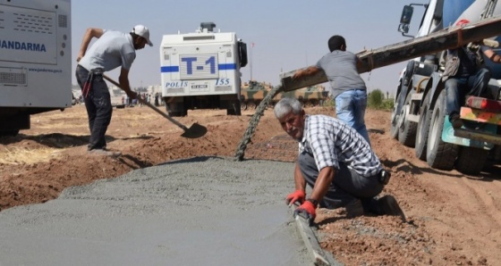 Güvenli beton çalışmaları mayınlı bölgede yürütülüyor. Mayınlı bölgenin sınırın Türkiye tarafında kalacak şekilde inşa edilen duvar nedeniyle iş makineleri araçlar ve personel ise mayınların arasından geçerek, çalışmaları yürütülüyor. Diğer taraftan da mayın temizleme çalışmaları yapılarak, duvar çalışmaları için güvenli yollar yapılıyor.