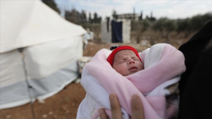 Afra bebek, Afrin ilçesinin Cinderes beldesinde Kahramanmaraş merkezli 7,7 büyüklündeki depremde yıkılan evlerinin enkazında dünyaya geldi.