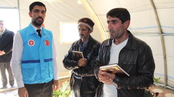 Türkiye Diyanet Vakfı (TDV) tarafından Mardin'in Midyat ilçesindeki Suriyeli sığınmacılara Kur'an-ı Kerim hediye edildi.