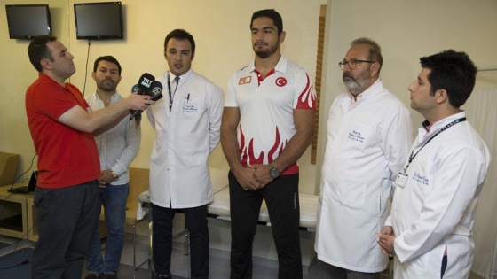 Taha Akgül, antrenörü Abdullah Çakmar ile geldiği hastanede doktorlarla bir araya gelerek sağlık durumunu değerlendirdi.