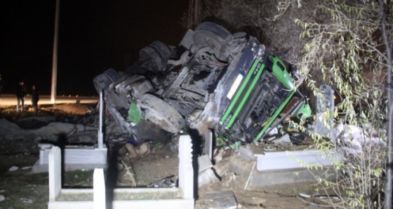 Edinilen bilgiye göre, Ereğli'den Konya'ya seyir halinde olan Eyüp B. idaresindeki 32 KF 920 plakalı küspe yüklü tır, sürücüsünün direksiyon hakimiyetini kaybetmesi sonucu kontrolden çıktı. Takla atan tır, karayolu kenarındaki Tatlıcak Mezarlığı'na girerek dururken, bazı mezarlar da kazadan zarar gördü.