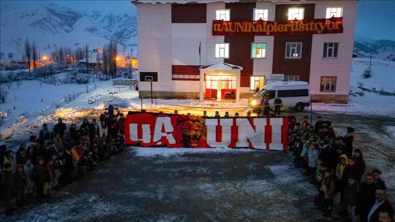 Galatasaray'ın taraftar grubu ultrAslan UNI üyeleri, Bitlis'in Mutki ilçesine bağlı Kacainiş köyüne yeni yıl öncesi yaptıkları sürpriz ziyarette öğrencilere hediye verdi.