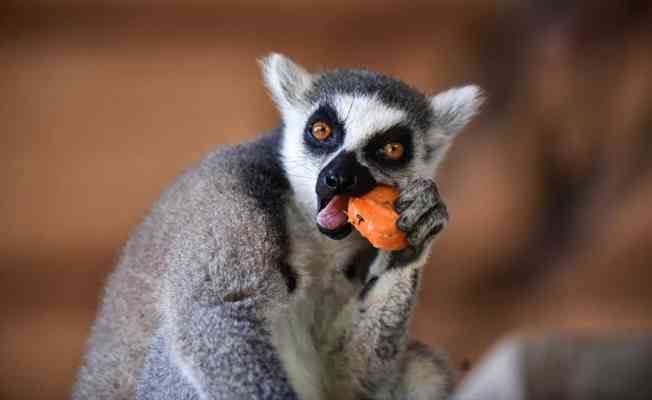 Tropikal iklimlere alışkın lemurlar, kendilerinden sorumlu bakıcılar tarafından özel yaşam alanlarında çeşitli meyve ve sebzelerle günde iki kez besleniyor.