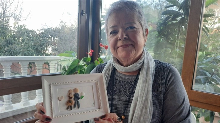 Yürüyüş yaparken sahil kenarından topladığı taş ve atık malzemeleri evine götüren Nakıpoğlu, oluşturduğu figürleri kağıda yapıştırarak tablo haline getirmeye başladı.