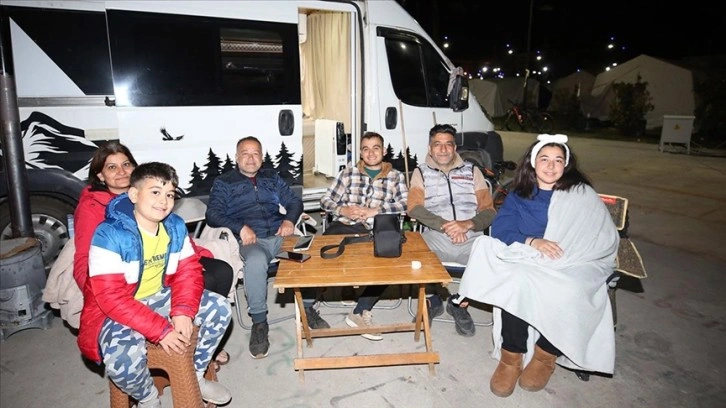 Arıcan kardeşler, mahalledeki Millet Parkı'na kurulan çadır kent alanına konuşlandırdıkları karavanda aileleriyle birlikte yaşıyor.