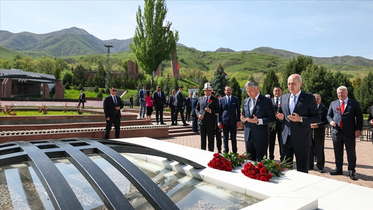 1938'de gizlice kurşuna dizilen dönemin Sanayi ve Ticaret Bakanı ve dünyaca ünlü Kırgız yazar Cengiz Aytmatov'un babası Toleykul Aytmatov'un da aralarında bulunduğu 138 Kırgız aydının mezarına çiçek bırakıp dua eden Kurtulmuş, ardından Kırgız yazar Cengiz Aytmatov'un kabrini ziyaret etti.