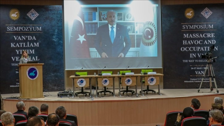 TBMM Başkanı Mustafa Şentop, Atatürk Kültür, Dil ve Tarih Yüksek Kurumu bünyesindeki Türk Tarih Kurumu tarafından Van Yüzüncü Yıl Üniversitesi ev sahipliğinde Mühendislik Fakültesi Konferans Salonu'nda düzenlenen "Van'da Katliam, Yıkım, İşgal: Tehcire Giden Yol" konulu sempozyumda katılımcılara video mesajla seslendi.