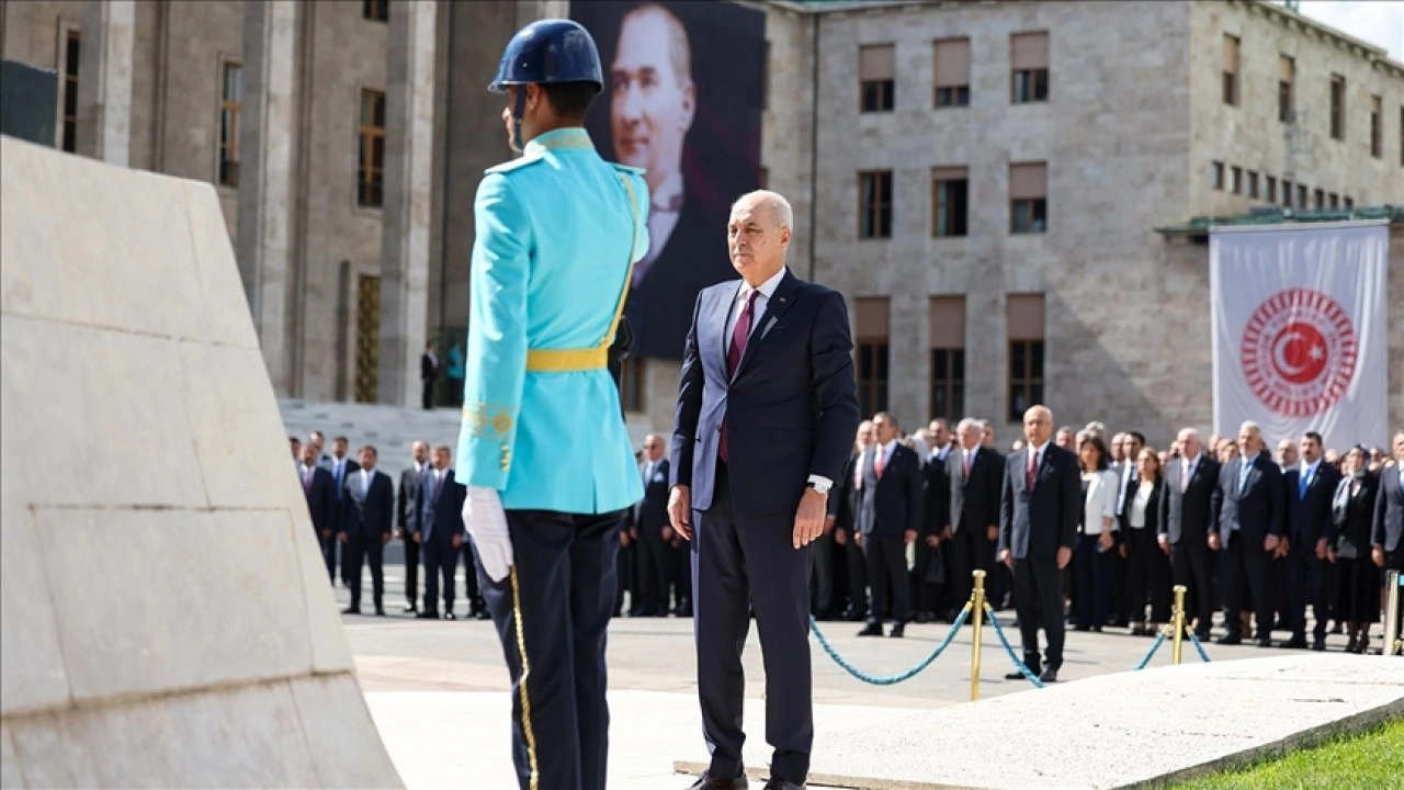 TBMM Başkanı Numan Kurtulmuş'un anıta çelenk bırakmasının ardından bando eşliğinde saygı duruşunda bulunularak, İstiklal Marşı okundu.