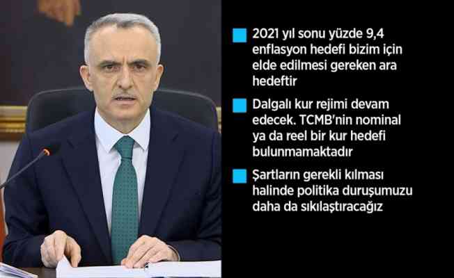 Ağbal, "Bugünden yüzde 5 hedefine varana kadar belirlemiş olduğumuz patika içerisinde ara hedefleri bir gösterge olarak sizlerle paylaştım. Şu anda yakın vadede, bizim için 2021 sonu için yüzde 9,4 tahmin hedefi mutlaka takip edilmesi ve elde edilmesi gereken bir ara hedef niteliğinde. Elimizdeki bütün araçları kullanmak suretiyle etkili bir politika duruşu sayesinde bu hedefi oluşturacağız." ifadelerini kullandı.