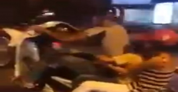 Yürekleri ağza getiren bu görüntü, Vietnam’ın işlek bir caddesinde çekildi. Sorumsuz sürücüsü, eşi ve oğluyla bindiği motosikletin önce önünü kaldırdı, ardından da bir süre trafikte tek lastik üzerinde yol aldı. Bu ölümle yüz yüze gelinen anlarda çevredekilerin ise ayıplamak yerine adeta cinayete teşebbüs eden adama tezahürat yaptıkları duyuldu.