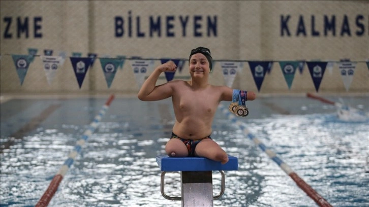 Tek koluyla evde ve okulda her işini kendisi gören, havuza girerken de hazırlıklarını yardım almadan yapan Muhammed Ali, bir yıldır antrenörü Erkan Altay gözetiminde haftanın 6 günü yüzme antrenman yapıyor.