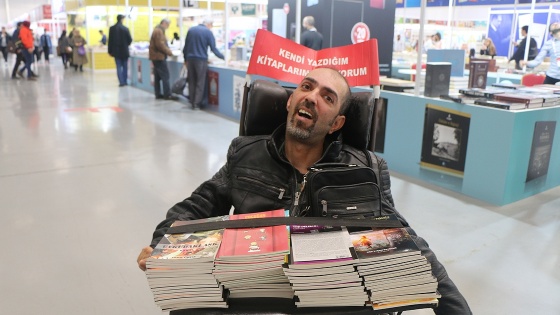 Kitap stantlarının arasında tekerlekli sandalyesiyle dolaşan Yalçın, AA muhabirine yaptığı açıklamada iki yaşında geçirdiği hastalıktan sonra beyin felci olduğunu, okuma yazmayı ise annesi sayesinde öğrendiğini anlattı.
