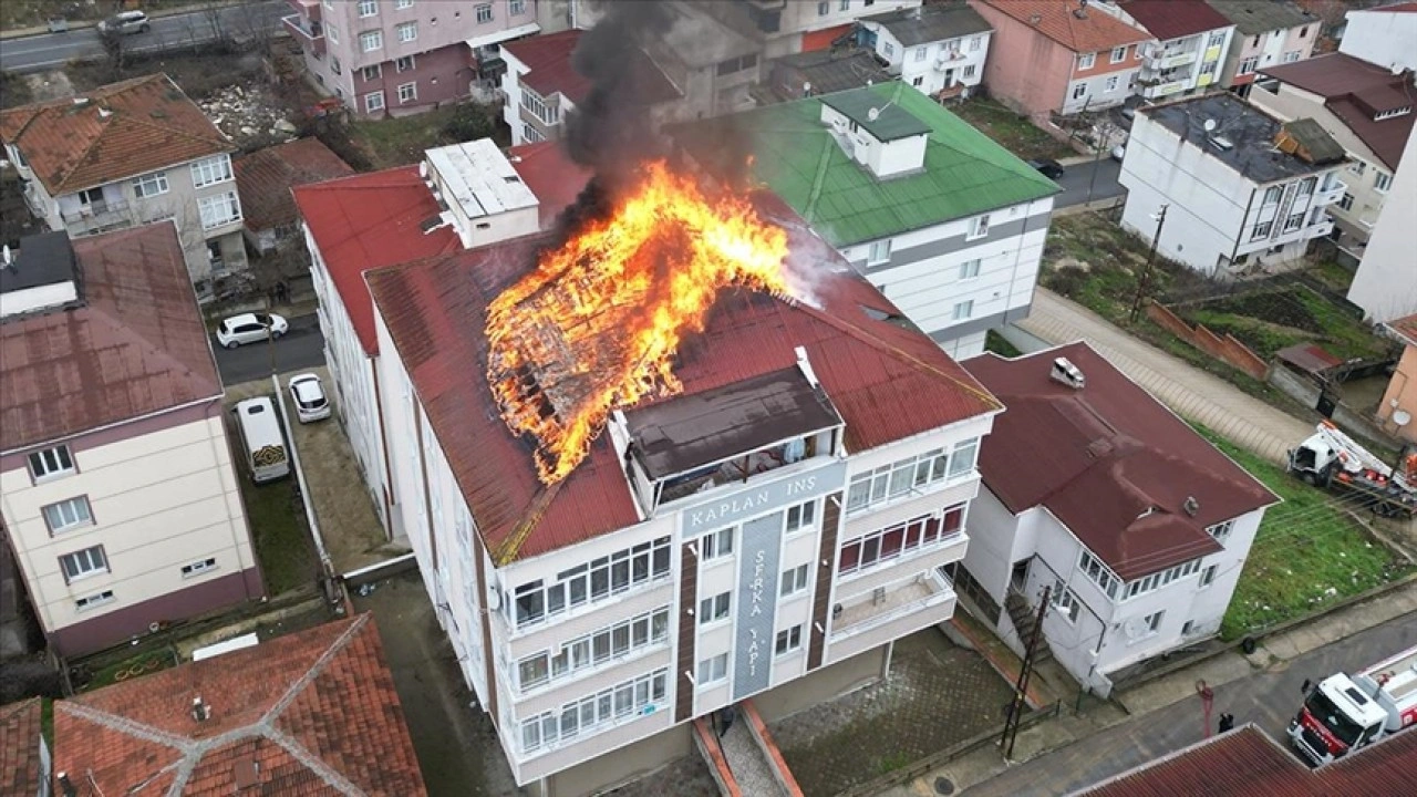 İstasyon Mahallesi’nde bir apartmanın çatı katında henüz belirlenemeyen nedenle yangın çıktı.