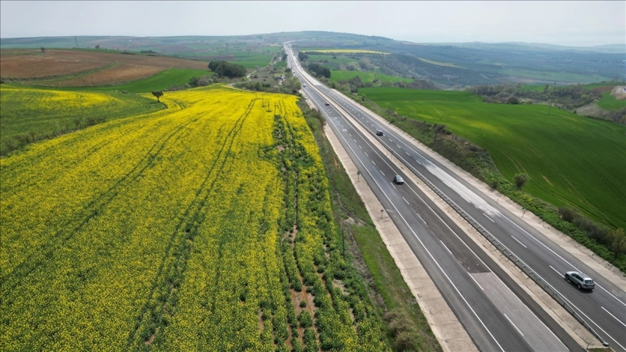 Tekirdağ-İstanbul ve Tekirdağ-Çanakkale kara yolu arasındaki tarlalarda ekili kanolalar çiçek açtı.