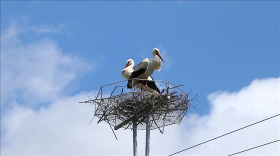 Ergene ilçesi Ahimehmet Mahallesi'ne konulan platformlara leylekler yuva yaptı.