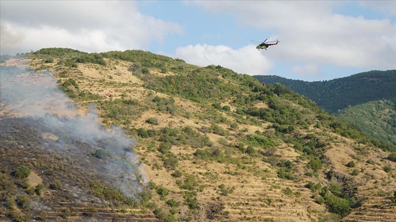 Orman İşletme Müdürlüğünden 15 personel, 3 arazöz ve helikopter, itfaiye ekiplerinin desteğiyle yangına müdahale etti.