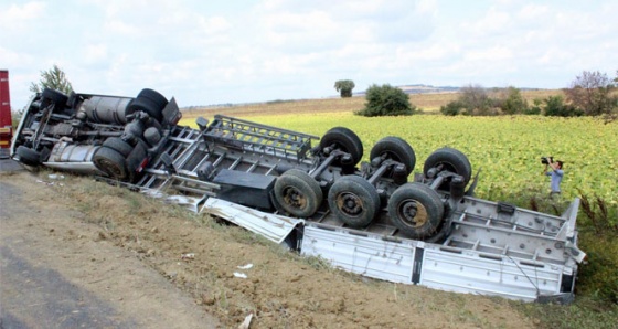 Kaza, Tekirdağ-Malkara yolu istikameti 20'nci kilometrede meydana geldi. Edinilen bilgiye göre U.T. hakimiyetindeki 35 NID 90 plakalı tır, şoförün direksiyon hakimiyetini kaybetmesi sonucu ayçiçeği tarlasına devrildi. Kazada tırın kasasında bulunan balyalar ayçiçeği tarlasına saçıldı. Kazada ölen veya yaralanan olmazken, olayla ilgili soruşturma başlatıldı. Halil Dağ