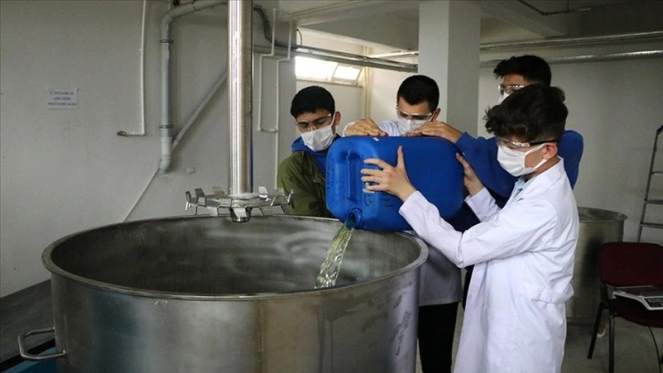 Öğrencilerden Hüseyin Bostancı da herkesin depremzedeler için bir şeyler yaptığını, kendilerinin de temizlik malzemesi üreterek destek olmaya çalıştığını dile getirdi.