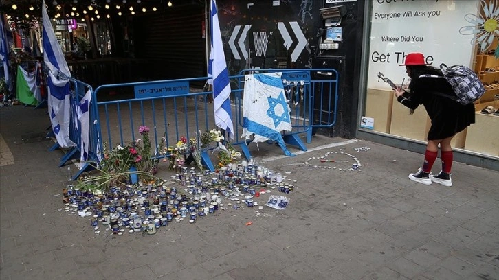 Saldırının yaşandığı Tel Aviv'in en işlek caddesindeki eğlence mekanının önü bir anma yerine dönüştü.