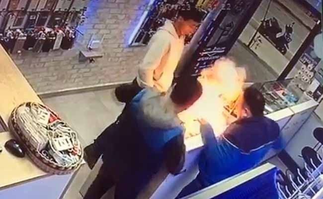 Kocaeli’nin Başiskele ilçesinde sahibi tarafından tamir için servise götürülen telefonun bataryası, servis görevlisinin elindeyken alev alarak yanmaya başladı. Yaşanan o anlar iş yerinin güvenlik kameralarınca anbean görüntülendi.