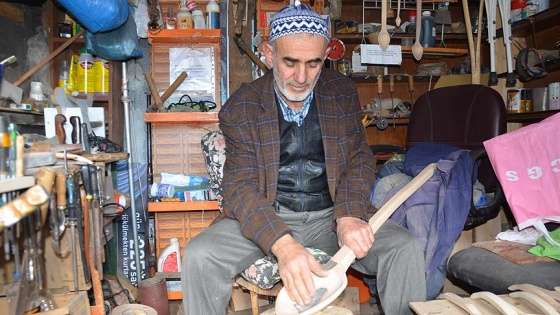 Çıkrıkçı Mahallesi’ndeki evinin bahçesine yaptığı 5 metrekarelik atölyede günlerini ağaç kütüklerini özenle işleyerek geçiren Doğan, ürettiği el emeği göz nuru kaşık ve bastonları çevresindekilere hediye ediyor.