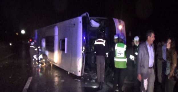 Yolcular şoförün orta refüjde bulunan toprak bölüme tekeri kaptırdığını yolun yağışlı ve ıslak olması nedeniyle toparlayamadığını ve devrildiğini iddia ettiler.