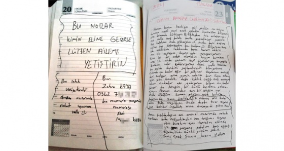 Bölücü terör örgütüne bilinçsizce katılan kadın teröristin, örgüte katıldıktan sonra yaşadığı bunalım ve çaresizliklerin ifade edildiği not defterinde duygusal satırlar yer alıyor. Mektuplarında terör örgütüne katıldığı için büyük bir hata yaptığını dile getiren, kardeşlerini aynı hatayı yapmamaları için uyaran kadın terörist, annesine, babasına ve kardeşlerine duyduğu özlemi belirtiyor.