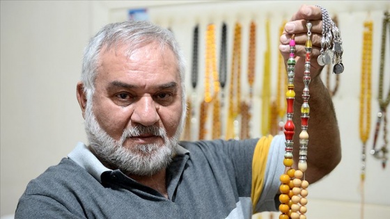 Kehribar, kuka gibi taşları el emeği göz nuruyla birbirinden değerli sanat eserlerine dönüştüren Alak'ın tespihleri, yurt içi ve dışından yoğun talep görüyor.