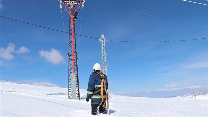 Fırtına nedeniyle elektrik direklerinde oluşan buzlanmaları temizleyerek arızaları gideren enerji timleri, özverili çalışmaları sonucunda bölgede enerji akışını sağlıyor.