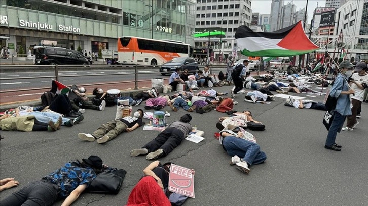 Ulusal basında yer alan haberlere göre, başketteki iş dünyasının merkezlerinden Şincuku'da düzenlenen gösteride Filistinliler için özgürlük çağrısı yapıldı.