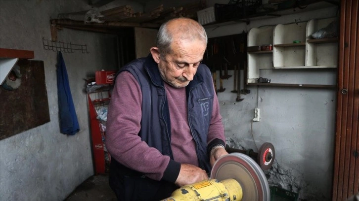 Bina sahibinin kendisinden kira almadığını kaydeden Çakmak, bıçak bileme ve tamirinin yanında balta, orak, keser gibi tarım aletleri de yaptığını ifade etti.