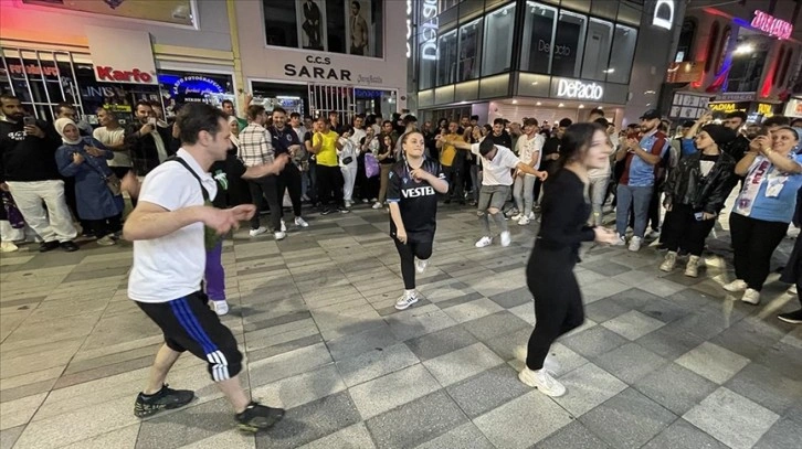 Maçın bitmesinin ardından Uzun Sokak'ta toplanan Trabzonspor taraftarları, takımlarının galibiyetlerini coşkuyla kutladı.