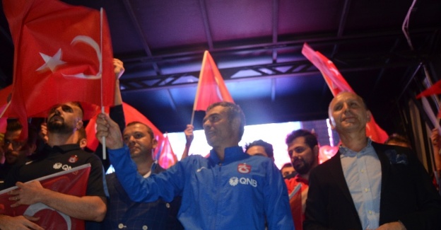 Yapılan konuşmaların ardından Trabzonsporlu yöneticiler, teknik heyet ve futbolcular ellerindeki Türk bayraklarını sallayarak alandan ayrıldılar.