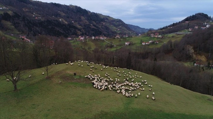 Trabzon'un dik yamaçlarında, koyun sürüleriyle şenlenen meralarda çobanların mesaisi devam ediyor.