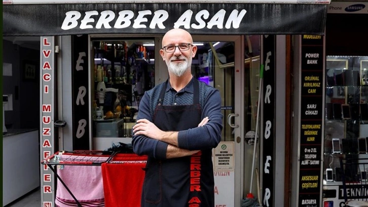 Alper Babacan, bir arkadaşının tavsiyesiyle berbere geldiğini, dükkanı görür görmez tabelasının dikkatini çektiğini belirtti.