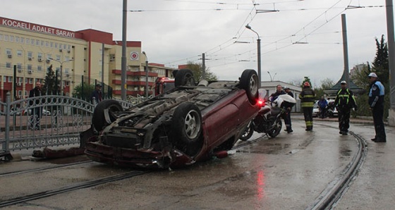 Olay, Kocaeli'nin İzmit ilçesi Körfez Mahallesi Akçaray tramvay hattı yolunda meydana geldi. Edinilen bilgiye göre tramvay yoluna giren Utku P. idaresindeki 10 D 7005 plakalı otomobil, sürücüsünün direksiyon hakimiyetini kaybetmesi neticesinde kontrolden çıkarak demir bariyerlere çarpıp takla attı. Kazada otomobil sürücüsü araç içerisinde sıkışarak yaralandı. Kazayı gören çevredeki vatandaşlar, durumu hemen 112 acil yardım ekiplerine bildirdi.